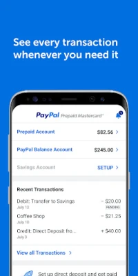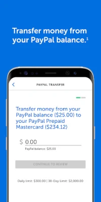 • Transfer funds instantly from your PayPal Account to your PayPal Prepaid Mastercard® Account